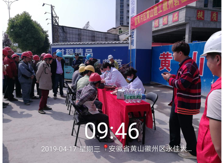 2019年4月17日上午9时,黄山建工集团承建的徽州碧桂园德源项目工程东大门,人声鼎沸、欢声笑语,每个人脸上都洋溢着幸福的笑容,他们排着队,有组织、有秩序地参加由碧桂园德源工程施工项目部组织的“关爱健康、免费体检”活动。此次体检活动邀请了屯溪同仁门诊部的四名医生,分科体检,对每位职工的心率、血压、外科、口腔等做了细致的检查,并做好体检记录,同时对工友们关心的日常生活问题、常识做了解答和温馨提示,此次项目部参加体检人员惠及95名。本次活动是为了增强员工关怀,保障员工身体健康,营造”平安、和谐、幸福、美丽”的示范工地。