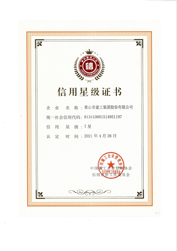 黄山建工集团再次荣获全国工程建设AAA级信用等荣誉称号