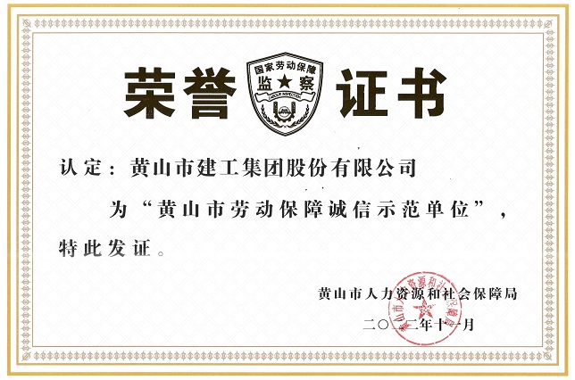 黄山建工集团荣获2022年黄山市劳动保障诚信示范单位称号