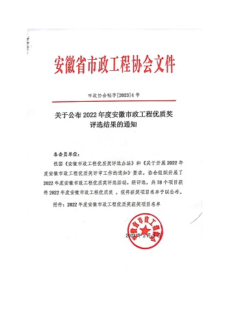 根据《安徽市政工程优质奖评选办法》和《关于开展2022年度安徽市政工程优质奖评审工作的通知》要求,安徽省市政工程协会组织开展了2022年度安徽市政工程优质奖评选活动。开云网页版-开云中国官方网站