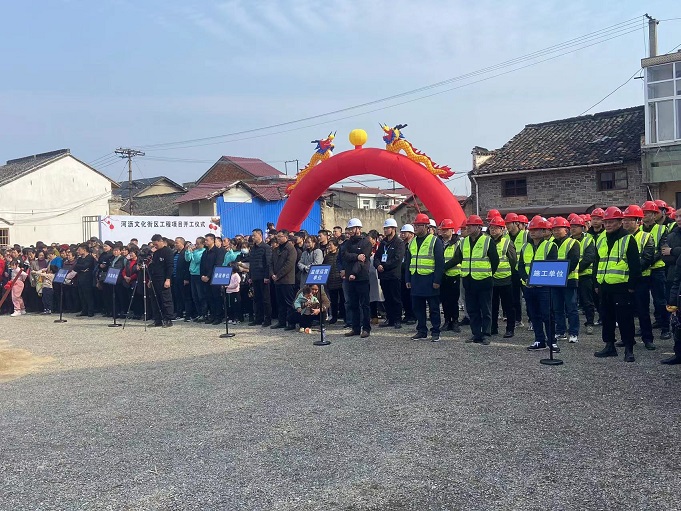 黄山建工集团董事长项端阳、总经理叶金发、副总经理吴学武及项目负责人和部分施工人员参加了宁国市河沥溪文化街区工程项目的开工盛典。