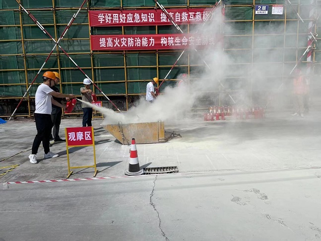 2023年6月是全国第22安全生产月,为深入贯彻落实习近平总书记关于安全生产重要论述,严格落实集团公司关于安全生产各项规定,进一步强化公司整体消防应急救援综合能力。68日下午,集团公司在齐云府六期项目开展人人讲安全、个个会应急消防安全应急演练活动。项目安全员开展消防器材的使用、扑救初起火灾疏散逃生等消防安全常识的培训。以通俗易懂的方式,深刻警示全体员工要提高对消防安全的重视。