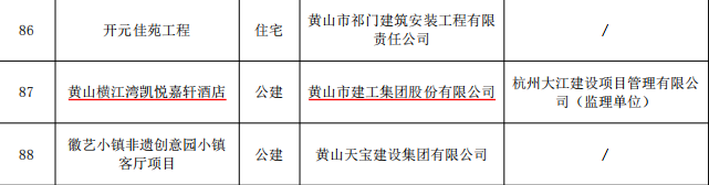 近日,黄山市住房和城乡建设局公布了2025年度黄山市建设工程“迎客松杯”奖获奖名单。黄山建工集团承建的安徽黄山省级粮食储备库仓库扩建9#平房仓项目、黄山区2019-15地块6#楼项目及黄山横江湾凯悦嘉轩酒店项目成功斩获三项“迎客松杯”奖。